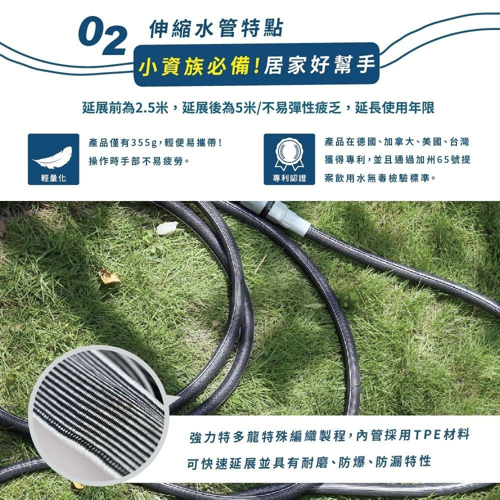 居家園藝伸縮水管擁有德國、加拿大、美國、台灣獲得專利